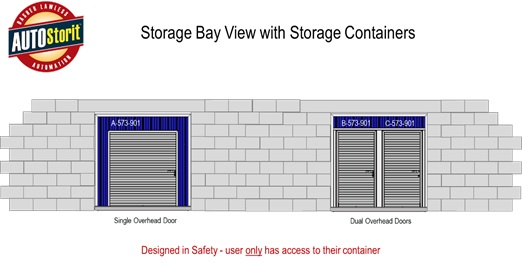 AUTOStorit is built from the same modular scalable architecture used by AUTOParkit a market leader in autonomous parking. Unlike parking cars, an AUTOStorit System provides high-density automated storage of containers. Unlike a conventional storage facility where a user needs to unload their contents onto a dolly or cart and move it through a series of hallways and/or elevator to reach the storage location, AUTOStorit upon demand delivers a storage container to a Storage Bay where a user can back their car up to the Storage Container’s overhead door. Loading and unloading curbside is significantly faster, easier, and less stressful than lugging items throughout a storage facility.